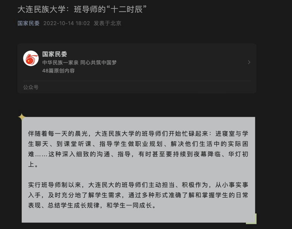 实行班导师制以来,大连民大的班导师们主动担当、积极作为,从小事实事入手,及时充分地了解学生需求,通过多种形式准确了解和掌握学生的日常表现、总结学生成长规律,和学生一同成长。