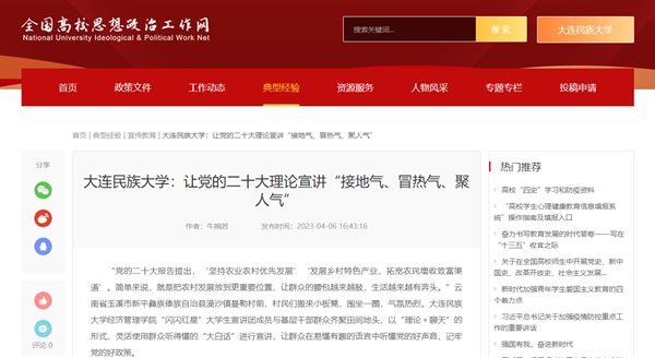为充分发挥理论宣讲的精神引领和指导实践的作用,经济管理学院成立“闪闪红星”大学生宣讲团,选派政治素质好、宣讲能力强的学生干部、学生党员285人,组建了46支学生宣讲队伍,发挥专题宣讲的带动作用和辐射效果,在集中学习培训的基础上,回到家乡,深入学校、田间地头、社区广场、活动中心等地把党的二十大的好政策、好方针、好精神宣传到民族地区。
