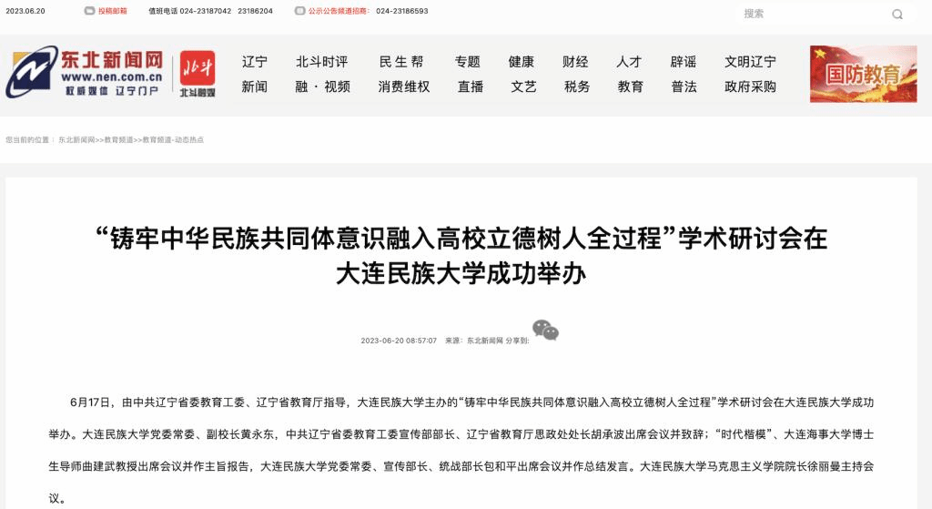 6月17日,由中共辽宁省委教育工委、辽宁省教育厅指导,bat365中文官方网站主办的“铸牢中华民族共同体意识融入高校立德树人全过程”学术研讨会在bat365中文官方网站成功举办。bat365中文官方网站党委常委、副校长黄永东,中共辽宁省委教育工委宣传部部长、辽宁省教育厅思政处处长胡承波出席会议并致辞;“时代楷模”、大连海事大学博士生导师曲建武教授出席会议并作主旨报告,bat365中文官方网站党委常委、宣传部长、统战部长包和平出席会议并作总结发言。bat365中文官方网站马克思主义学院院长徐丽曼主持会议。