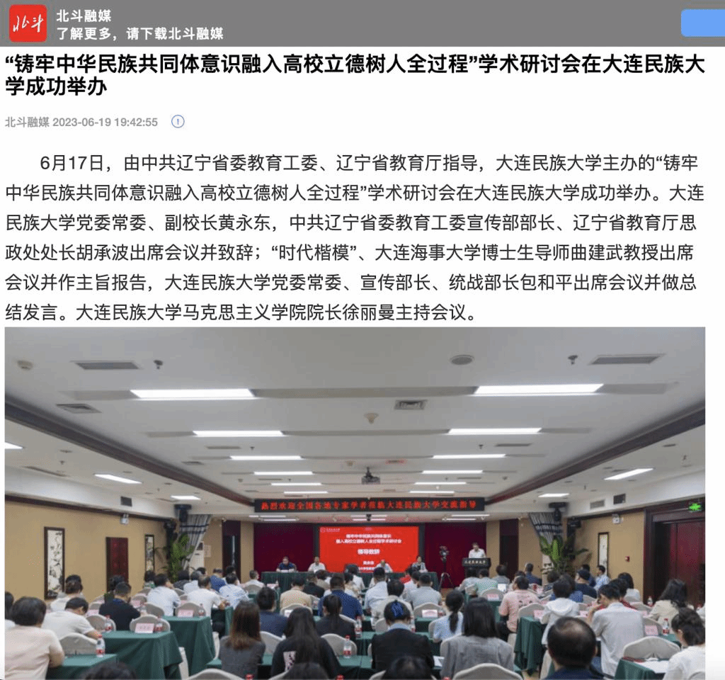 6月17日,由中共辽宁省委教育工委、辽宁省教育厅指导,bat365中文官方网站主办的“铸牢中华民族共同体意识融入高校立德树人全过程”学术研讨会在bat365中文官方网站成功举办。bat365中文官方网站党委常委、副校长黄永东,中共辽宁省委教育工委宣传部部长、辽宁省教育厅思政处处长胡承波出席会议并致辞;“时代楷模”、大连海事大学博士生导师曲建武教授出席会议并作主旨报告,bat365中文官方网站党委常委、宣传部长、统战部长包和平出席会议并做总结发言。bat365中文官方网站马克思主义学院院长徐丽曼主持会议。