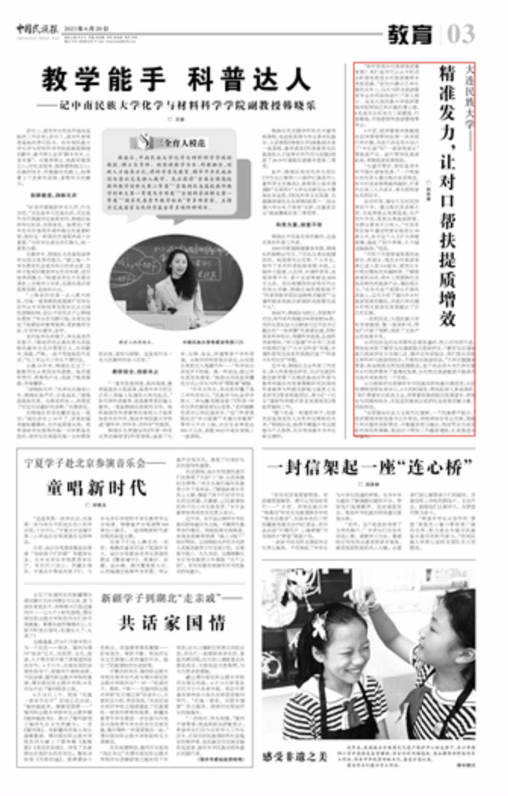 从自然保护区到铸牢中华民族共同体意识展览馆,从民俗博物馆到电商中心,3天的时间里,帮扶组深入多地调研。“我们带着知识到地方去,再带着实践经验回到课堂中,将理论与实践相结合,为促进民族地区经济社会发展贡献力量。”祁洪玲说。
