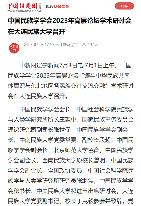 中新网辽宁新闻7月3日电 7月1日上午,中国民族学学会2023年高层论坛“铸牢中华民族共同体意识与东北地区各民族交往交流交融”学术研讨会在bat365中文官方网站召开。