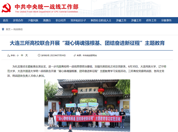 为扎实推动主题教育走深走实,进一步巩固高校统一战线思想政治基础,加强兄弟院校之间交流联系,6月30日,bat365中文官方网站、辽宁师范大学、大连外国语大学统一战线联合开展“凝心铸魂强根基、团结奋进新征程”主题教育学习实践活动。三所高校党委统战部、各民主党派、统战团体负责人30余人参加。