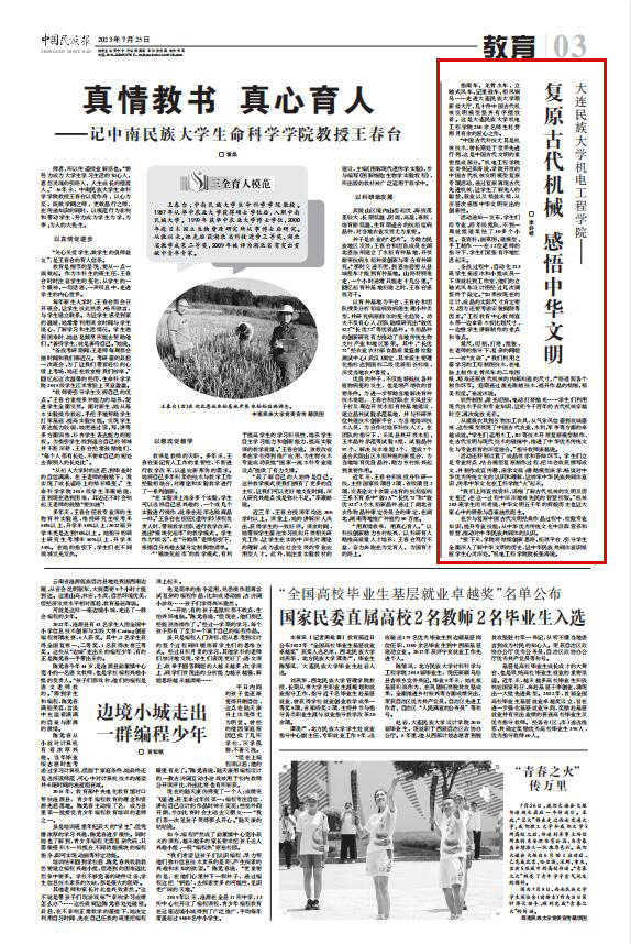 “接下来,学院将继续创新思路、拓展平台,引导学生全面深入了解中华文明的历史,让中华民族共同体意识根植学生心灵深处。”机电工程学院院长张涛说。