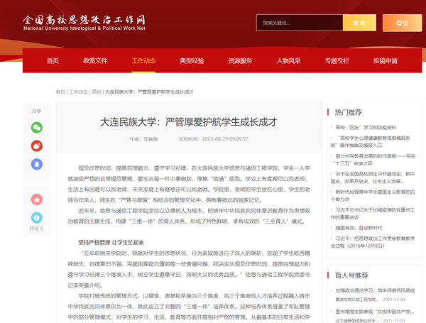 近年来,信息与通信工程学院坚持以立德树人为根本,把铸牢中华民族共同体意识教育作为思想政治教育的主题主线,构建“三维一体”的育人体系,形成了特色鲜明、卓有成效的“三全育人”模式。