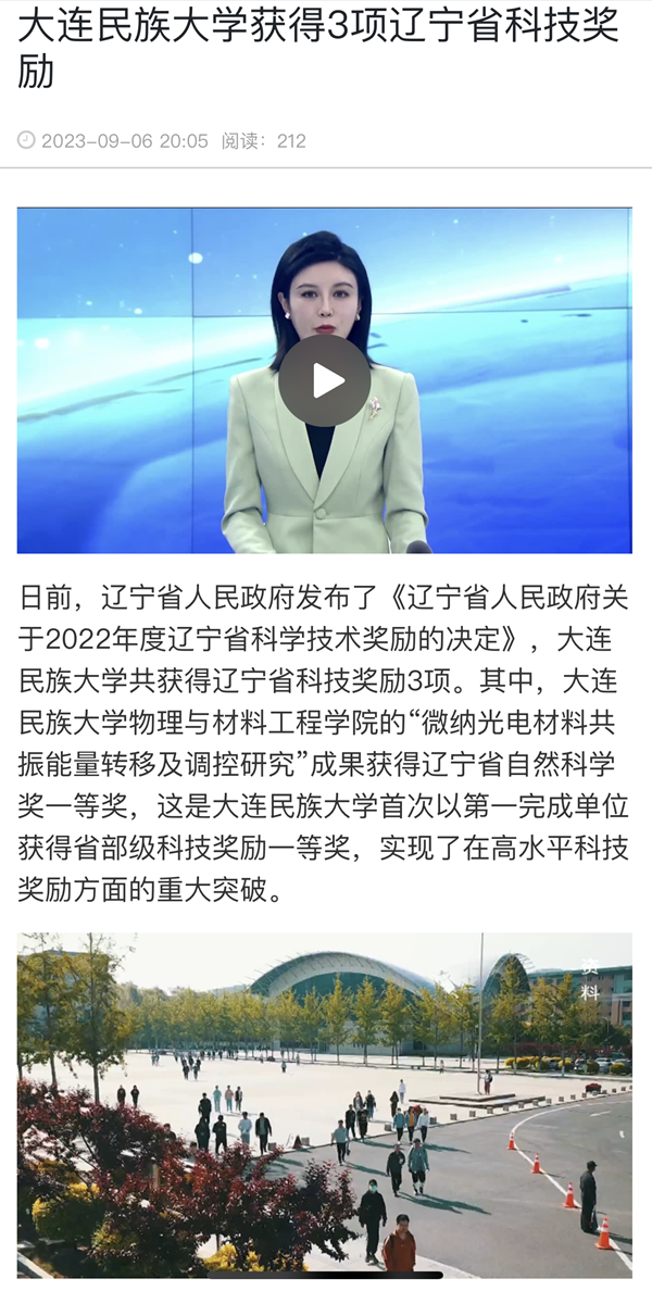 日前,辽宁省人民政府发布了《辽宁省人民政府关于2022年度辽宁省科学技术奖励的决定》,bat365中文官方网站共获得辽宁省科技奖励3项。其中,bat365中文官方网站物理与材料工程学院的“微纳光电材料共振能量转移及调控研究”成果获得辽宁省自然科学奖一等奖,这是bat365中文官方网站首次以第一完成单位获得省部级科技奖励一等奖,实现了在高水平科技奖励方面的重大突破。