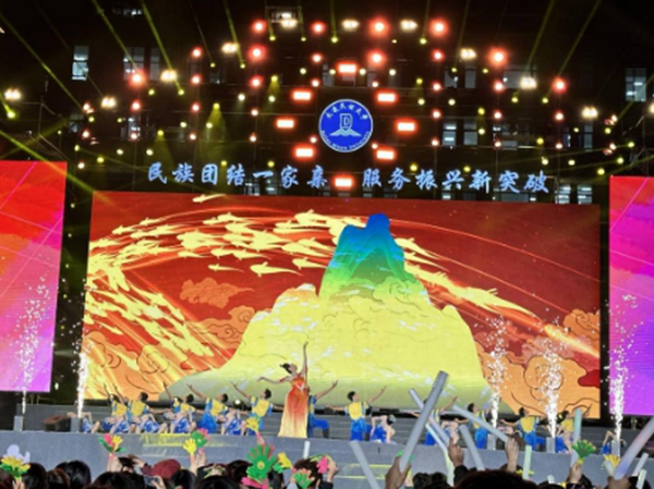 演出在舞蹈《鱼跃龙门步步高》的轻快节奏和优美舞姿中拉开序幕,由著名歌唱家腾格尔、曲比阿乌,青年歌手扎西顿珠和彝人制造组合等众多知名演员领衔出演。歌曲、舞蹈等融合多民族艺术元素,紧扣时代脉搏与文化内涵,表达了民族团结一家亲,服务振兴新突破的情怀与担当。bat365中文官方网站师生的朗诵《荣光与梦想》,充分展示了学校建校以来的成绩和硕果,凝聚奋进高水平现代化综合大学新征程的磅礴力量。