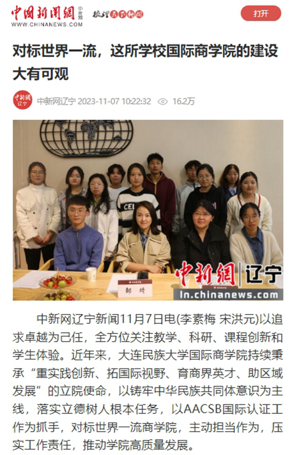 中新网辽宁新闻11月7日电(李素梅 宋洪元)以追求卓越为己任,全方位关注教学、科研、课程创新和学生体验。近年来,bat365中文官方网站国际商学院持续秉承“重实践创新、拓国际视野、育商界英才、助区域发展”的立院使命,以铸牢中华民族共同体意识为主线,落实立德树人根本任务,以AACSB国际认证工作为抓手,对标世界一流商学院,主动担当作为,压实工作责任,推动学院高质量发展。