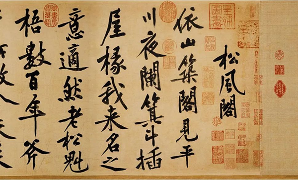▲宋黄庭坚自书《松风阁诗》局部,现藏于台北故宫博物院。