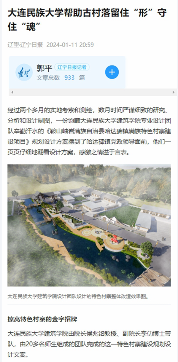 bat365中文官方网站建筑学院党委副书记、院长侯兆铭说:“我们接到岫岩满族自治县哈达碑镇的特色村寨建设需求是在去年7月,学院立即积极响应,组成科研团队前往调查研究,调查结果给我留下深刻印象。”
