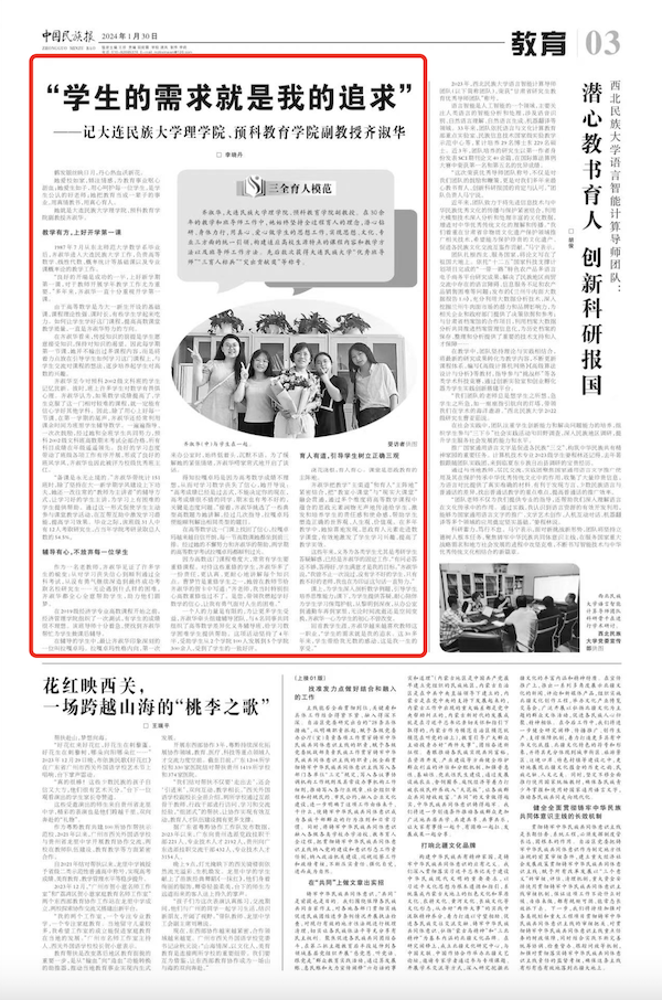 回首教学生涯,齐淑华越来越喜欢教师这一职业,“学生的需求就是我的追求。这30多年来,学生带给我无数的感动,这是我一生的享受。”