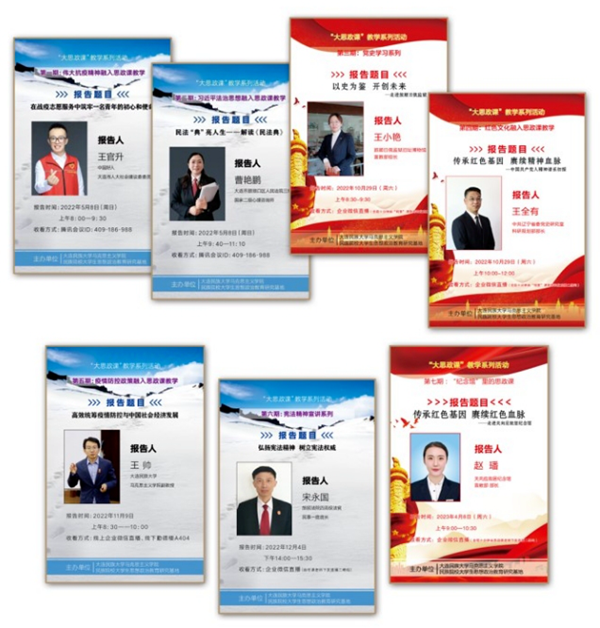 学院坚持内外课堂相结合、内修与外化相统一,强化协同共进、联动发展的系统思维,打造“大师资、大课堂、大平台”,不断推进“大思政课”建设走深走实。学院牵头制定了学校《推进“思政课程+课程思政”建设工作方案》,设立8个创新工作室,围绕理论宣传、课程思政、党团工作等七项内容面向全校各院(部)开展指导,年均开展对接活动50余次,辐射带动千余名教师投入课程思政建设,有效推动了专业课程与思政课程同向同行,培育了“一百名课程思政示范教师、一百门课程思政示范课程、一百个课程思政示范课堂”,其中2位教师入选教育部课程思政教学名师。建立了包括时代楷模、道德模范、青年榜样等共同组成的70余人兼职思政课“大师资”队伍,每年开展专题讲座10余场;充分挖掘运用辽宁“六地”红色文化资源,与包括关向应故居纪念馆、大连大学附属新华医院等10个“大思政课”实践教学基地合作共建。依托辽宁“六地”红色文化资源,打造“纪念馆里的思政课”特色实践教学品牌,开展线上线下结合式情境教学,活动辐射师生近万人。近年来,学院“大思政课”建设取得显著成效,获辽宁省教学成果奖一等奖一项、二等奖3项、辽宁省高等教育教学成果奖1项、国家民委教学成果评估A+等级2项、省部级教改立项20余项。