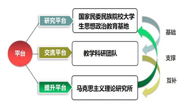 举办民族院校,是中国特色解决民族问题正确道路的重要举措。进入新时代,习近平总书记反复强调要努力促进各民族大团结,铸牢中华民族共同体意识。学校党委坚持服务党的民族工作大局,服务地方民族团结进步事业发展,坚持以铸牢中华民族共同体意识为主线,明确要求马克思主义学院在铸牢中华民族共同体意识上“走在前、作表率”,努力培养具有民族团结基因和中华民族共同体意识的合格人才。学校党委带头讲思政课、带头听思政课、带头联系思政课教师,保证每学期至少召开1次专题会议研究马克思主义学院建设重点工作。学院确立了三个“一”工作重点:一是开设一门特色思政课,在切实加强以“习近平新时代中国特色社会主义思想概论”为核心的思政课建设的同时,在全国率先开设“中华民族共同体概论”课,强化主渠道育人功能。同时积极探索教学改革创新,构建“理论主课堂+实践大课堂+网络新课堂”三维教学模式,1门思政课获批国家级一流本科课程,5门课程获批辽宁省一流本科课程,所有本硕思政课程均获评校级精品课。二是利用线上平台,建设一个特色教学资源库,为思政课开展铸牢教育提供教学资源、考试资源,确保相关内容全方位融入思政课教学。三是打造一个特色研究平台,依托国家民委民族院校大学生思想政治教育基地,聚焦主线开展理论研究和实证研究,面向全国民族高校开展大学生思想政治状况滚动调研,为民族高校思政工作提供数据支持,多项成果获省部级领导批示或政府部门采纳。学校连续三次被国务院授予“全国民族团结进步模范集体”。学校已经成为铸牢中华民族共同体意识的坚强阵地,培养各民族优秀人才的重要基地,为促进民族团结进步、服务区域经济社会发展作出了积极贡献。马克思主义学院、思政课在人才培养中发挥了重要思想引领作用。
