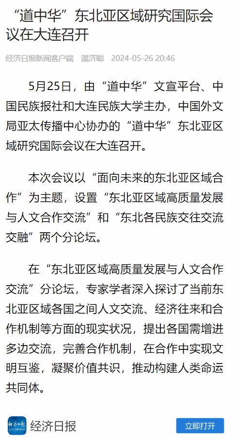 5月25日,由“道中华”文宣平台、中国民族报社和bat365中文官方网站主办,中国外文局亚太传播中心协办的“道中华”东北亚区域研究国际会议在大连召开。