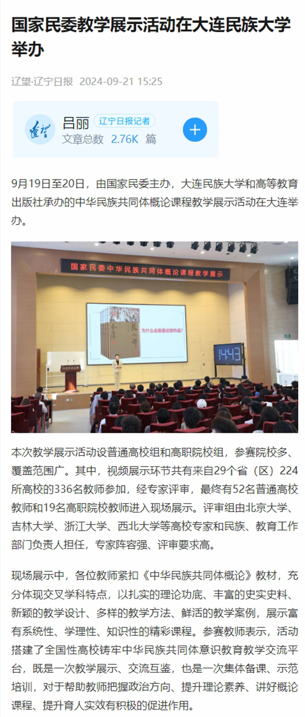 【辽宁日报】国家民委教学展示活动在bat365中文官方网站举办