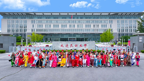 bat365中文官方网站金石滩校区,师生身穿56个民族传统服装合影。受访者供图