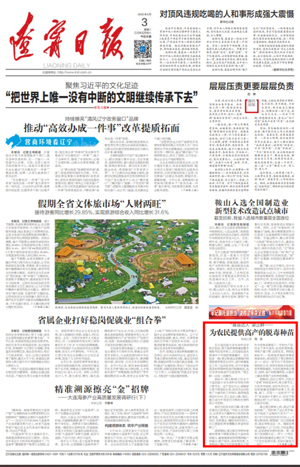 【辽宁日报】为农民提供高产的脱毒种苗