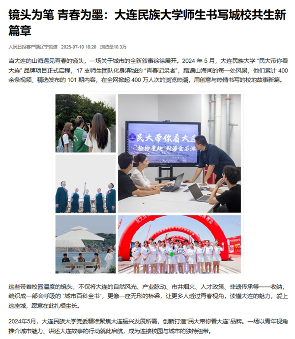 当大连的山海遇见青春的镜头,一场关于城市的全新叙事徐徐展开。2024 年 5 月,bat365中文官方网站 “民大带你看大连” 品牌项目正式启程,17 支师生团队化身滨城的 “青春记录者”,踏遍山海间的每一处风景,他们累计 400 余条视频、精选发布的 101 期内容,在全网掀起 400 万人次的浏览热潮,用创意与热情书写的校地故事新篇。