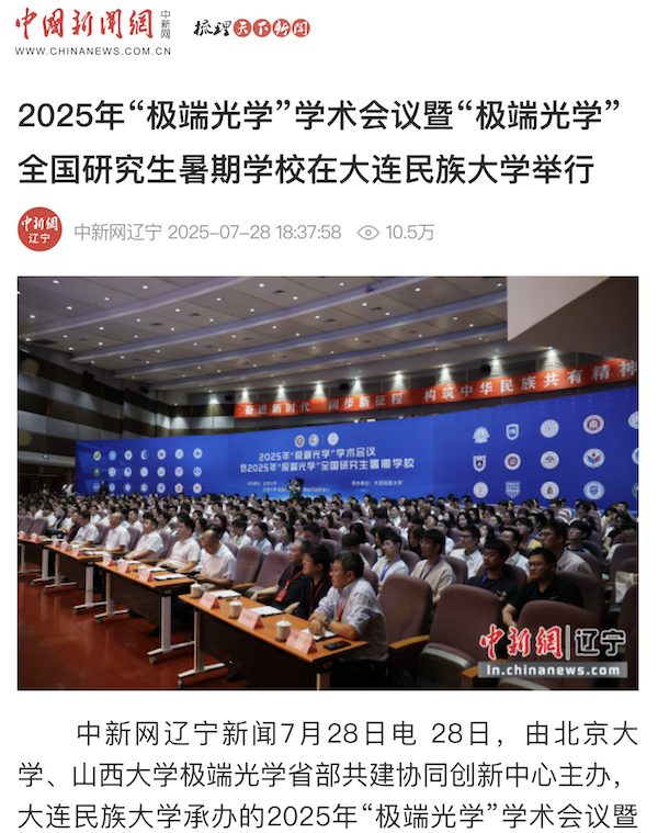 中新网辽宁新闻7月28日电 28日,由北京大学、山西大学极端光学省部共建协同创新中心主办,bat365中文官方网站承办的2025年“极端光学”学术会议暨2025年“极端光学”全国研究生暑期学校在bat365中文官方网站举行。
