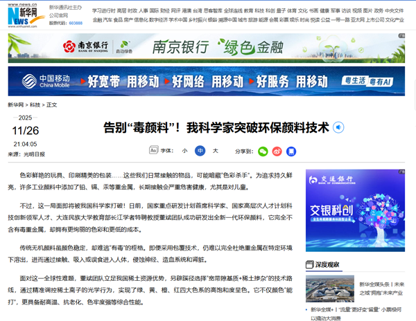 “新型稀土环保颜料的出现及量产,不仅解决了传统颜料毒性大、环境污染等问题,还在稳定性和生产成本上展现出显著优势。”中国科学院院士徐红星评价,新颜料呈色的策略还突破了传统颜料的局限,这一创新性思路将引领“下一代颜料技术”。