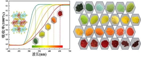 面对这一全球性难题,董斌团队立足我国稀土资源优势,另辟蹊径选择“宽带隙基质+稀土掺杂”的技术路线,通过精准调控稀土离子的光学行为,实现了绿、黄、橙、红四大色系的高饱和度呈色。它不仅颜色“能打”,更具备耐高温、抗老化、色牢度强等综合性能。