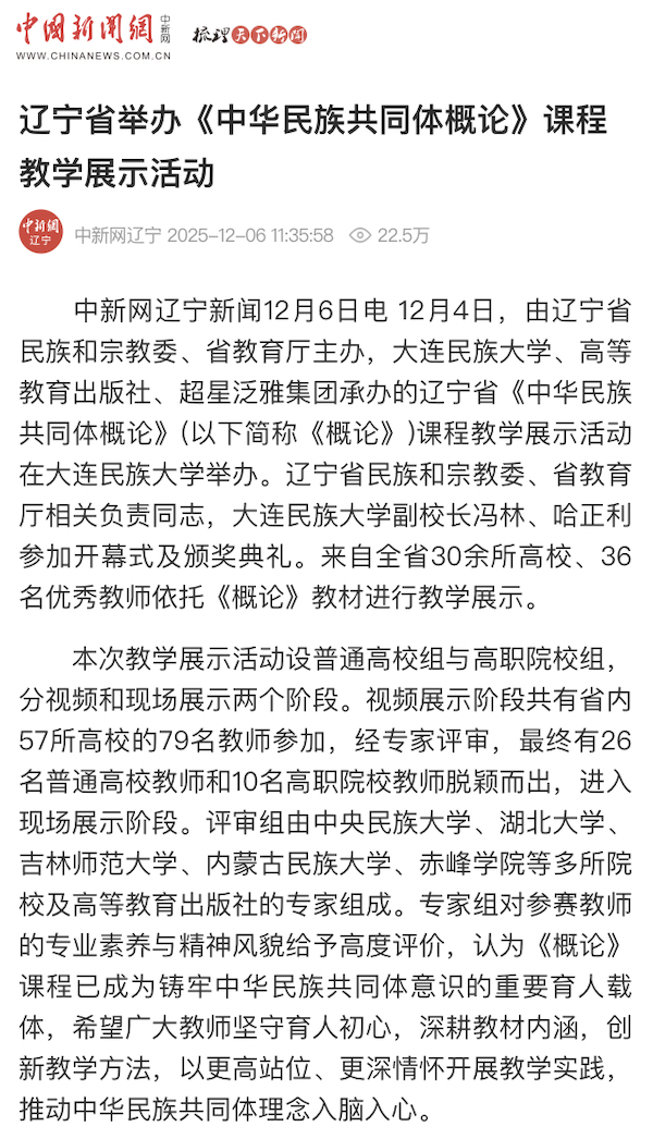 【中国新闻网】辽宁省举办《中华民族共同体概论》课程教学展示活动