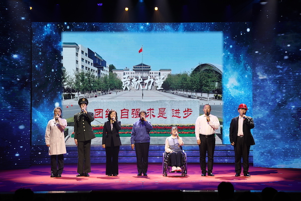 闭幕式上,曾在习近平总书记考察澳门时,参加现场亲切交流的澳门科技大学“澳科一号”卫星研制团队成员之一的孙照龙校友,获得“中国大学生自强之星”的韦怡校友,国家教学名师、全国模范教师、辽宁省“最美教师”获得者刘秋,公寓管理中心刘玉叶与5名在校生代表一同分享了自己与民大共成长的故事。学校普通话能力提升班优秀学员代表以“纪念中国人民抗日战争暨世界反法西斯战争胜利80周年”为主题,表演了情景诗朗诵《烽火永续》。闭幕式在师生共同表演的《同心共筑中国梦》中圆满结束。