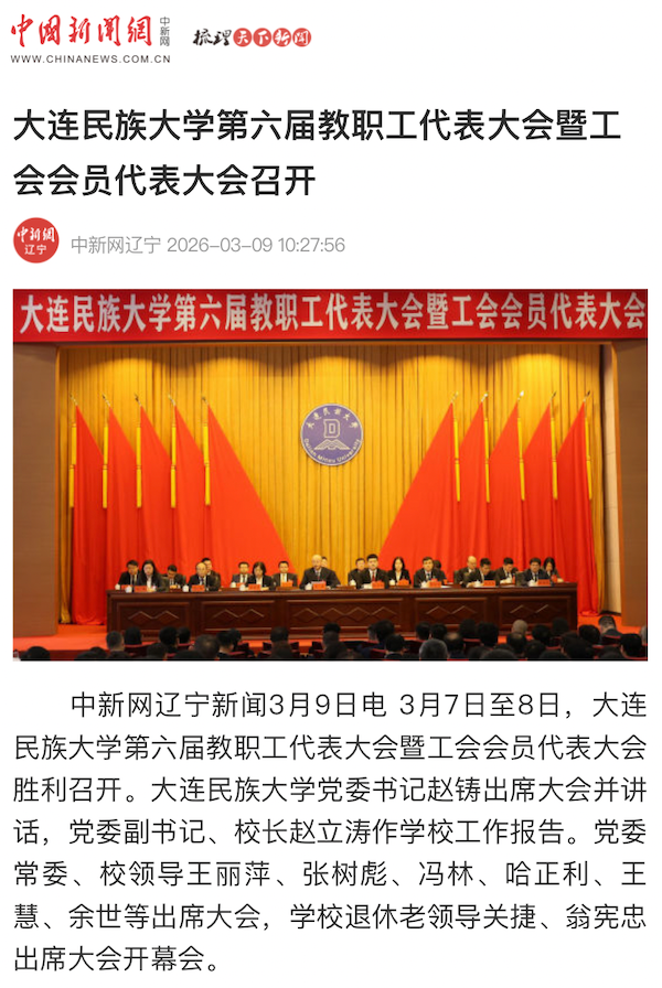 中新网辽宁新闻3月9日电 3月7日至8日,bat365中文官方网站第六届教职工代表大会暨工会会员代表大会胜利召开。bat365中文官方网站党委书记赵铸出席大会并讲话,党委副书记、校长赵立涛作学校工作报告。党委常委、校领导王丽萍、张树彪、冯林、哈正利、王慧、余世等出席大会,学校退休老领导关捷、翁宪忠出席大会开幕会。