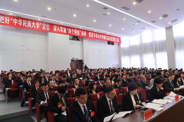 赵铸作了题为《把好“中华民族大学”定位 深入实施“四个突出”战略 坚定不移走好内涵式高质量发展之路》的讲话。他强调,过去一段时期以来,学校党委锚定目标,加压奋进,团结带领干部职工一件事接着一件事的干,积小胜为大胜,学校发展迈入历史上最好的时期。“十五五”时期是学校初步建成高水平现代化综合大学夯实基础、全面发力的关键时期,要抢抓民族工作和教育事业的历史性机遇,坚持一张蓝图绘到底,坚定信心、真抓实干,快速发展、乘势而上,不断集聚学校的优势和特色。