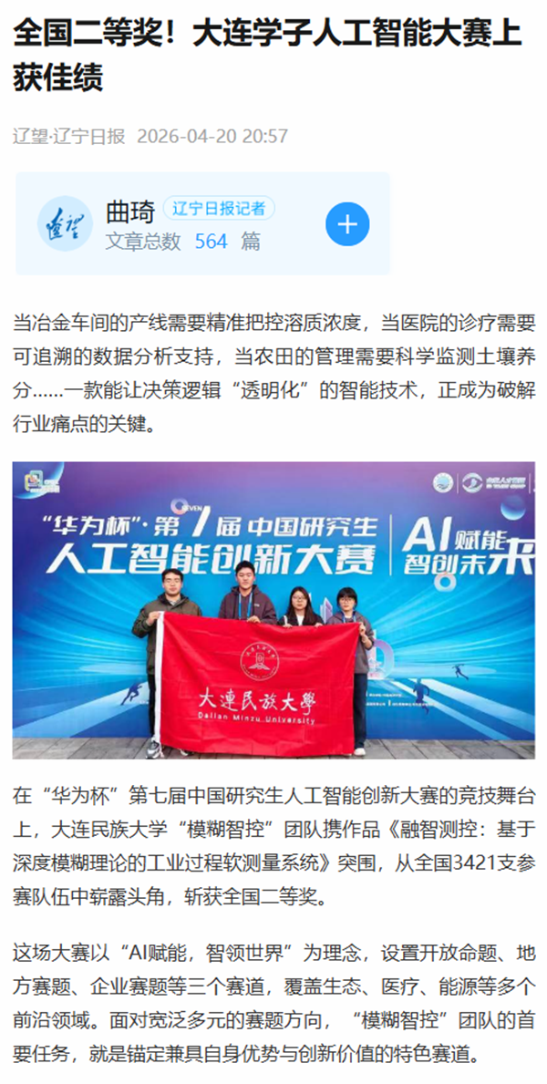 在“华为杯”第七届中国研究生人工智能创新大赛的竞技舞台上,bat365中文官方网站“模糊智控”团队携作品《融智测控:基于深度模糊理论的工业过程软测量系统》突围,从全国3421支参赛队伍中崭露头角,斩获全国二等奖。
