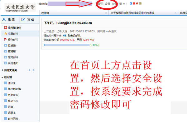 为防范弱口令造成的信息安全风险,请在2021年6月21日前对电子邮件、信息门户登录密码进行修改。新密码须包含字母、数字、字符,长度不小于8位,例如aK4*d90A。具体操作如下: