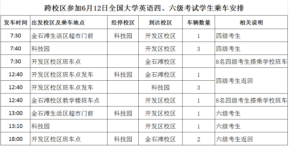 考试当日全面封闭开发区校区第一教学楼、第二教学楼、综合楼和第三教学楼(设计学院),金石滩校区主楼、第一实验楼和经管楼,考试无关人员严禁入内。