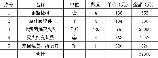 采购内容:网络中心机房气体灭火系统充装灭火药剂