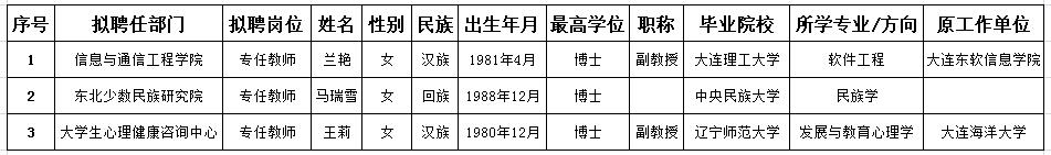 根据《国家民委直属事业单位公开招聘人员暂行办法》《bat365中文官方网站优秀人才引进与管理实施办法(试行)》及《bat365中文官方网站2019年公开招聘教师公告》,经个人申报、资格审查、试讲考核、体检考察等程序,经学校党委研究,确定了bat365中文官方网站2019年公开招聘拟聘人选兰艳等3人,现予以公示。