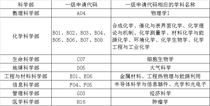 面上项目试点开展分类申请与分类评审的学科名单