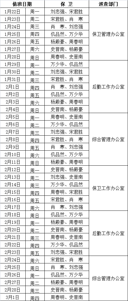 金石滩校区2018寒假值班表