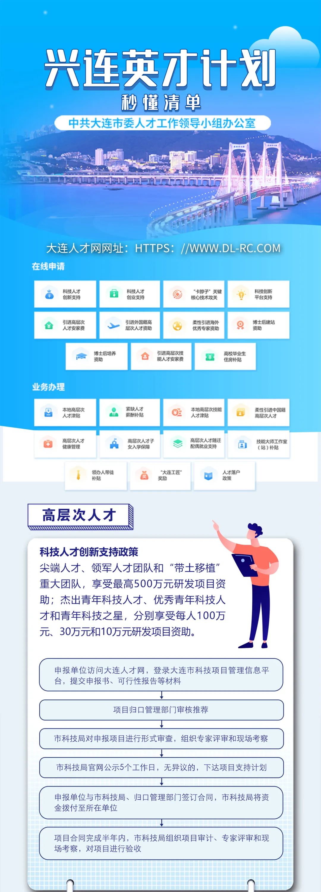 围绕提升用人主体和人才对象的体验感和获得感,推动人才工作从 “定政策”提升到 “抓服务”的层次,大连市重磅出台“兴连英才计划”及配套实施细则,建成人才大数据综合服务平台,实现人才政策“一次不用跑”“即申即享”。