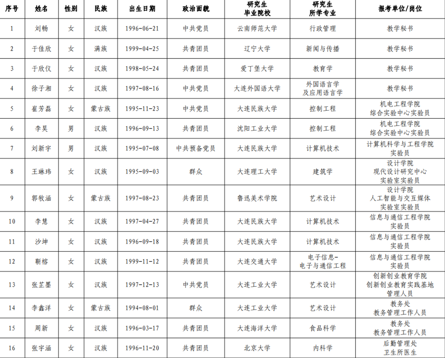 根据《bat365中文官方网站2024年春季学期公开招聘劳动合同制人员公告》,通过个人报名、资格审查、笔试、面试等环节,经校长办公会研究,现将拟聘用人员公示如下:
