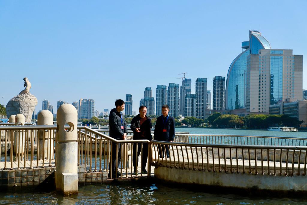 图为近日,福建省厦门市思明区纪检监察干部在筼筜湖区监督调研,了解水体保护相关责任落实情况,着力发现和查处生态环境保护领域不正之风和腐败问题。何志芳 摄