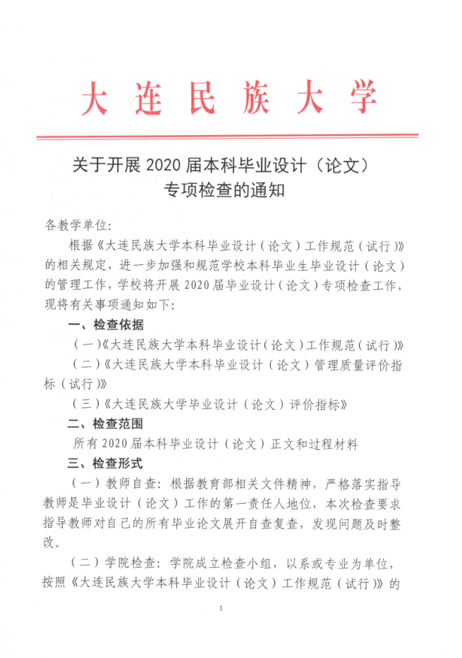 关于开展2020届本科毕业设计(论文)专项检查的通知