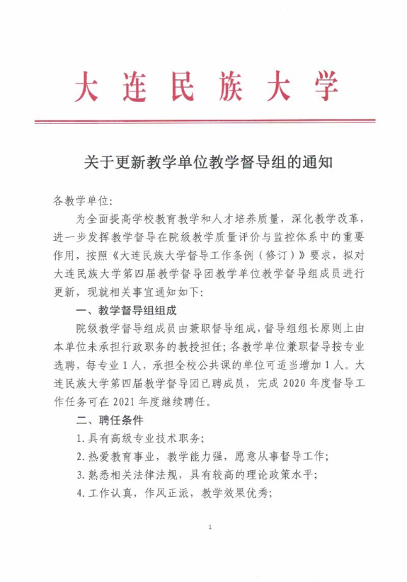 关于更新教学单位教学督导组的通知