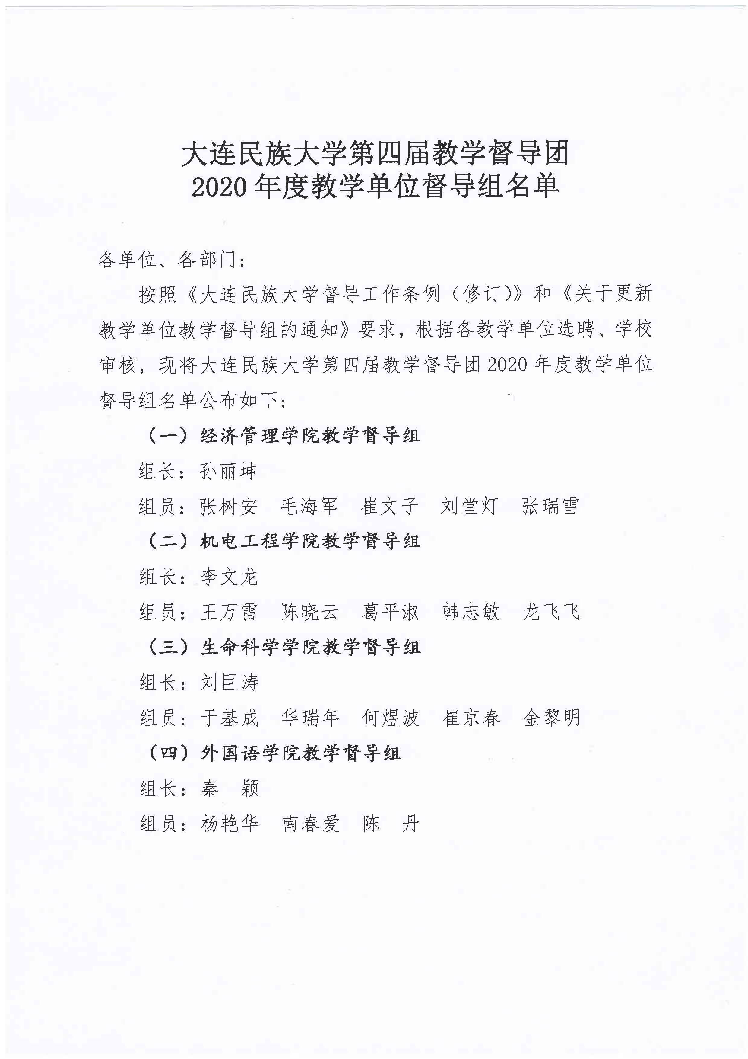 bat365中文官方网站第四届教学督导团2020年度教学单位督导组名单