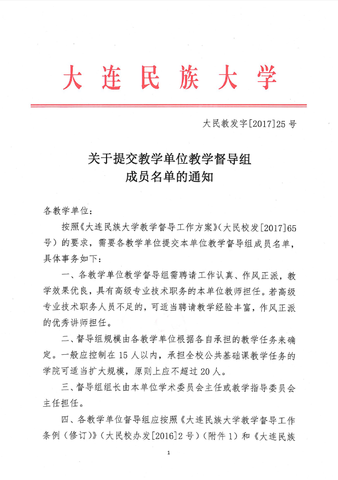 关于提交教学单位教学督导组成员名单的通知