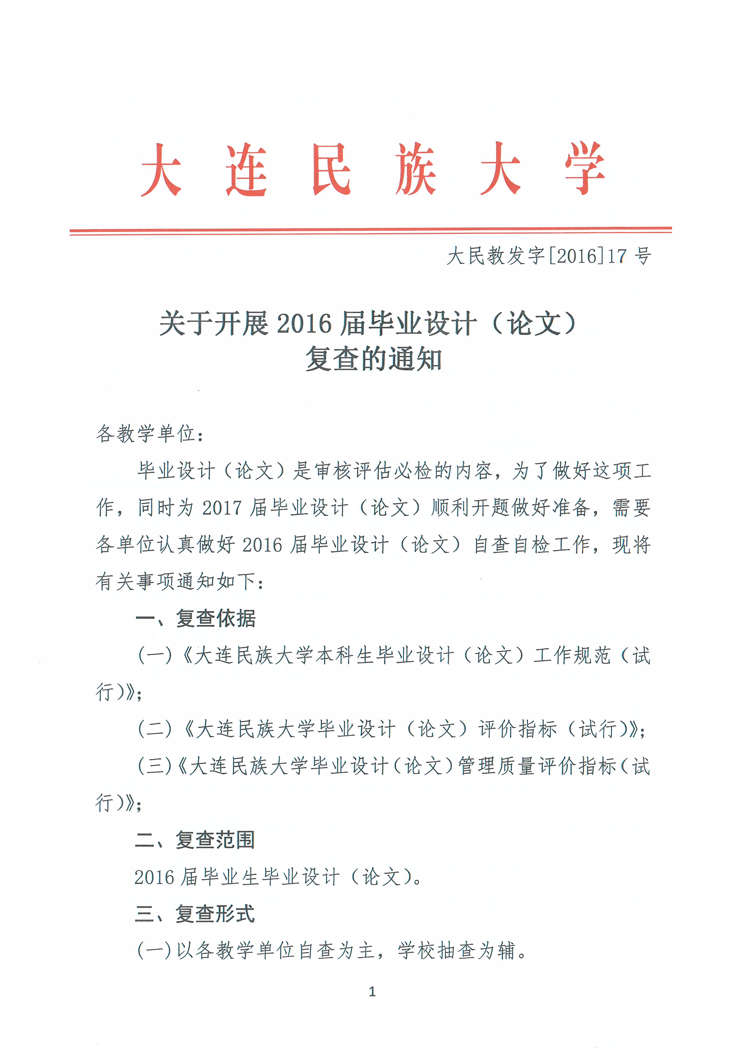 关于开展2016届毕业设计(论文)复查的通知