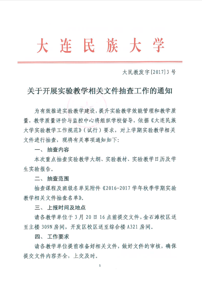 关于开展实验教学相关文件抽查工作的通知
