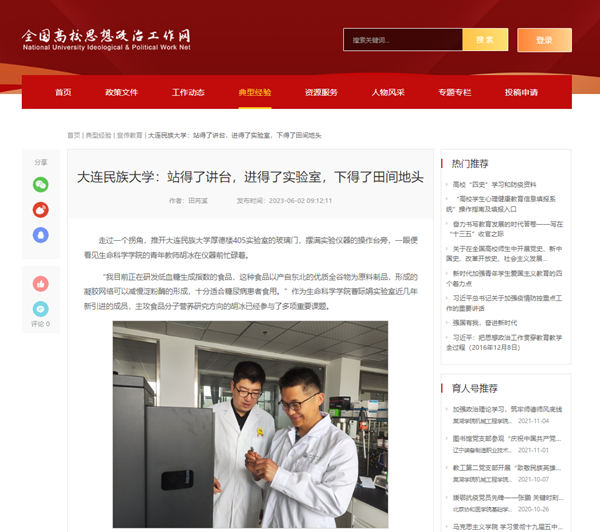 “我目前正在研发低血糖生成指数的食品,这种食品以产自东北的优质全谷物为原料制品,形成的凝胶网络可以减慢淀粉酶的形成,十分适合糖尿病患者食用。”作为生命科学学院曹际娟实验室近几年新引进的成员,主攻食品分子营养研究方向的胡冰已经参与了多项重要课题。在这个实验室里,除了操作仪器的滴嗒声,最常出现的就是胡冰和张晓波就某一问题的讨论声。