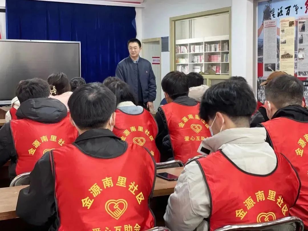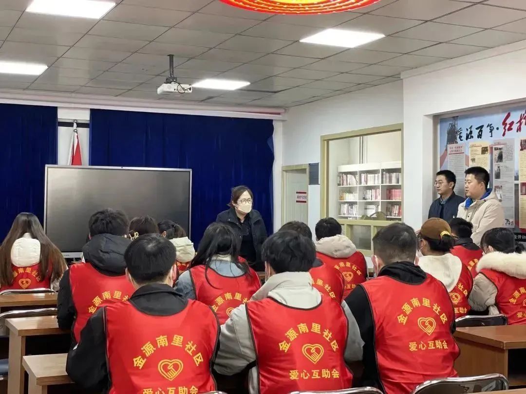 社区团支部书记于新回顾了金源南里社区和生命科学学院长年合作的友好关系,对生命科学学院的学生志愿服务工作给予了高度赞扬。并向志愿者们讲解了当前开展学雷锋活动的重要意义,以及学生志愿者如何在社区进行志愿服务活动。