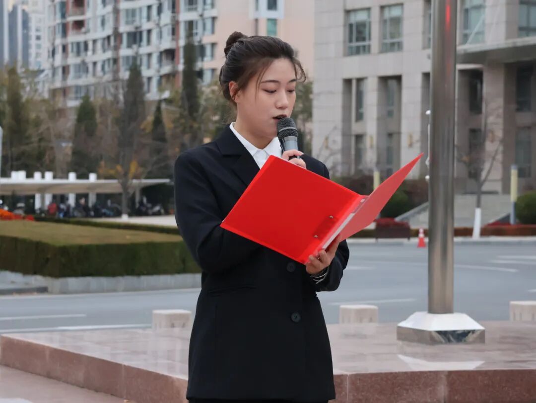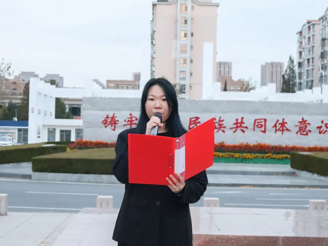 11月19日,化学工程与工艺222班邱婉婷在国旗下演讲。她提到学校连续第四次获 “全国民族团结进步模范集体” ,对于民大学子而言,既是荣誉,更是责任和使命。在校园生活中,同学们应团结友爱、互帮互助,以平等包容心态相处,借由学校“一帮一”互助学习小组的良好平台和各民族小伙伴们一道互相学习,共同进步。临近期末,她呼吁大家应当诚信考试,指出学习是青年大学生要务,考试检验学习成果且关乎道德品质,同学们应凭真实水平应考,最后祝愿大家取得理想成绩。