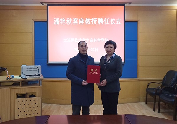 4月22日下午,学校举行客座教授聘任仪式,聘任大连理工大学潘艳秋教授为客座教授。校长丁克毅、副校长张树彪、生命科学学院教师代表参加聘任仪式。仪式由人事处处长刘满主持。
