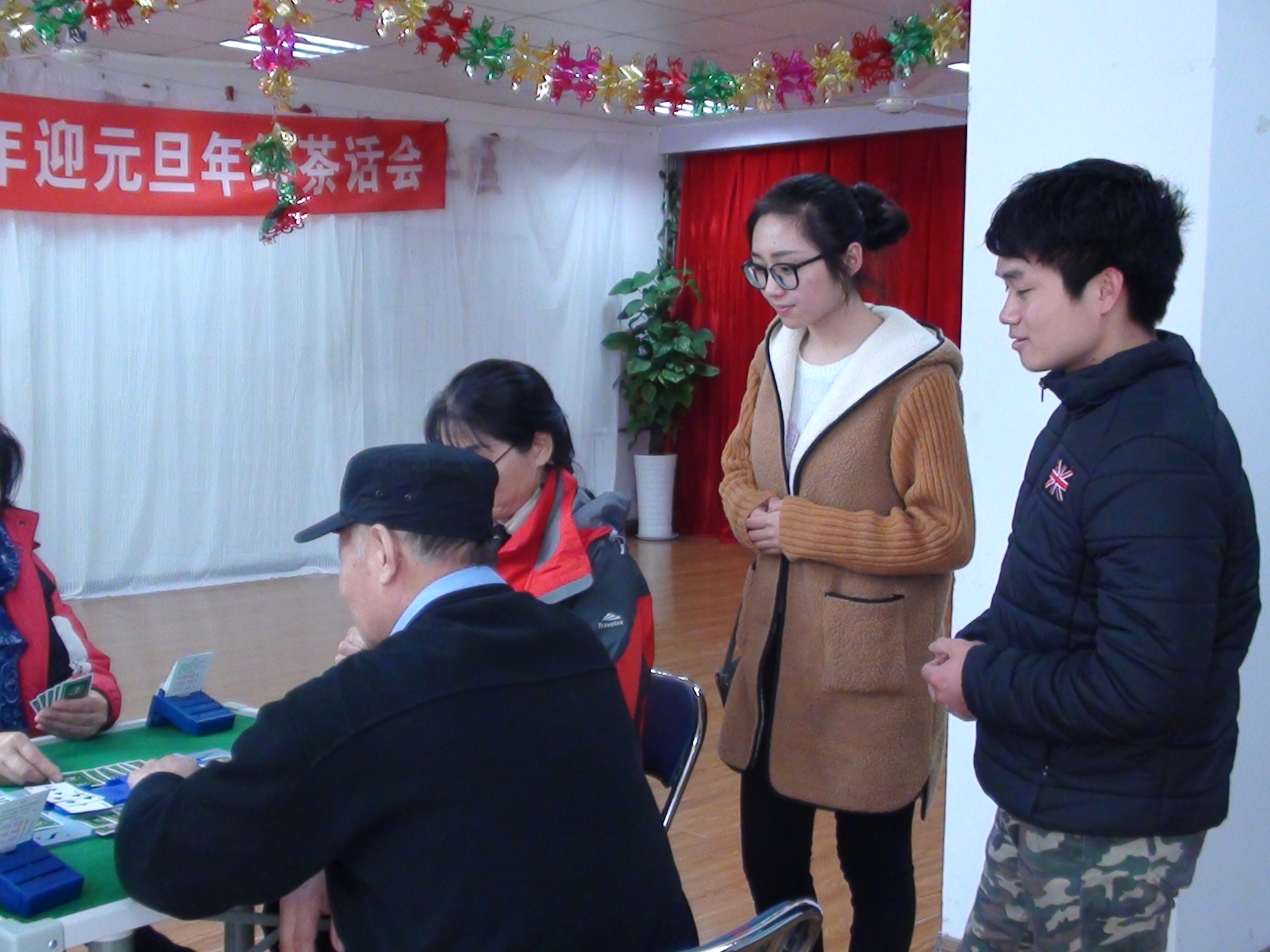 当天早晨,志愿者们提前返校集合,虽然道路情况不好,但志愿者们依然按时到达服务岗位。由金源南里社区负责人带领志愿者们一一走访失独老人家庭,提供暖心服务。每到一个家庭,志愿者们都要为老人们送上慰问品,并陪伴老人暖心聊天,了解老人身体情况,并告知生活中应该注意的地方。在金源南里社区活动室,志愿者们各尽所能做好暖心服务,有的志愿者像子女一样陪老人打牌、下棋,有的志愿者为老人们斟茶、倒水,有的志愿者陪伴老人聊天,有的志愿者跟老人一起学习广场舞。
